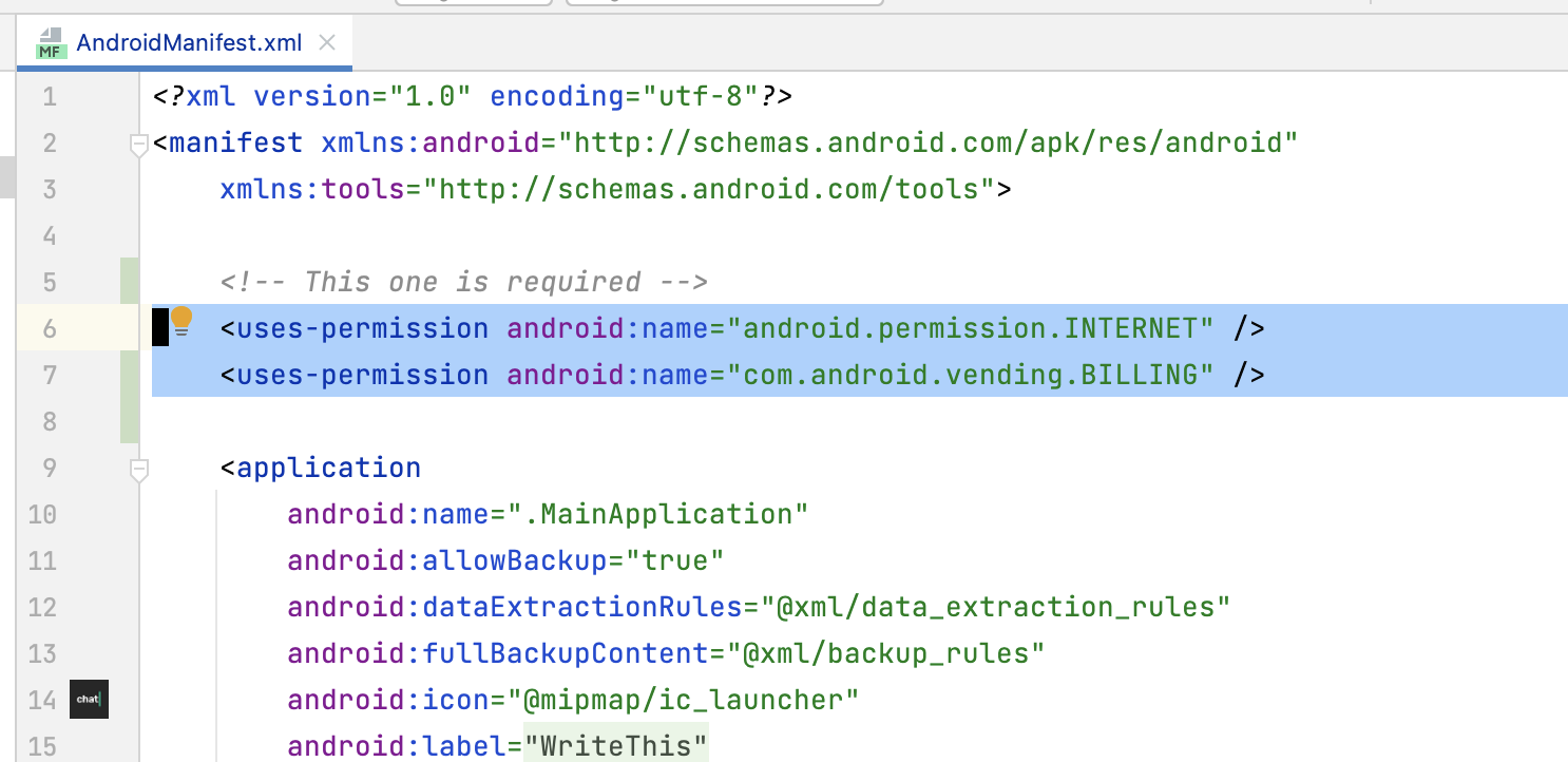 <uses-permission android:name="com.android.vending.BILLING" />